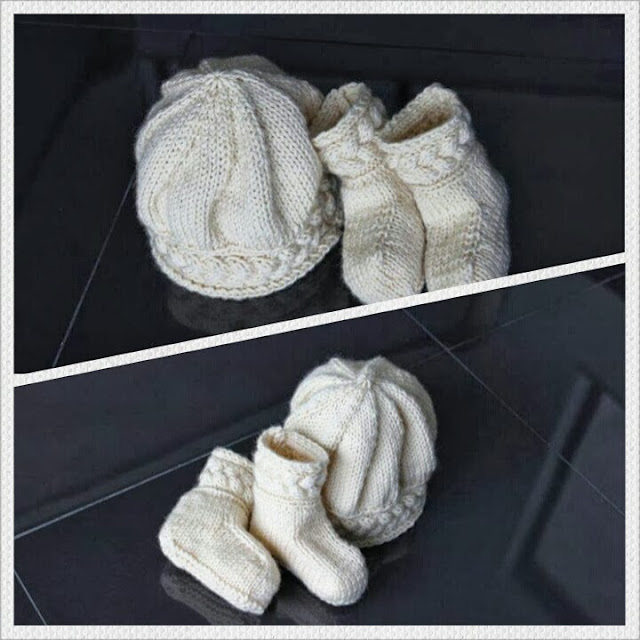 Vi este gorro na net e decidi que tinha que fazê-lo...adoro, adoro. Assim, peguei num modelo de umas botinhas que aqui tinha e adaptei uma trança na zona da perna para fazer conjunto...ficou mega fofo ;)