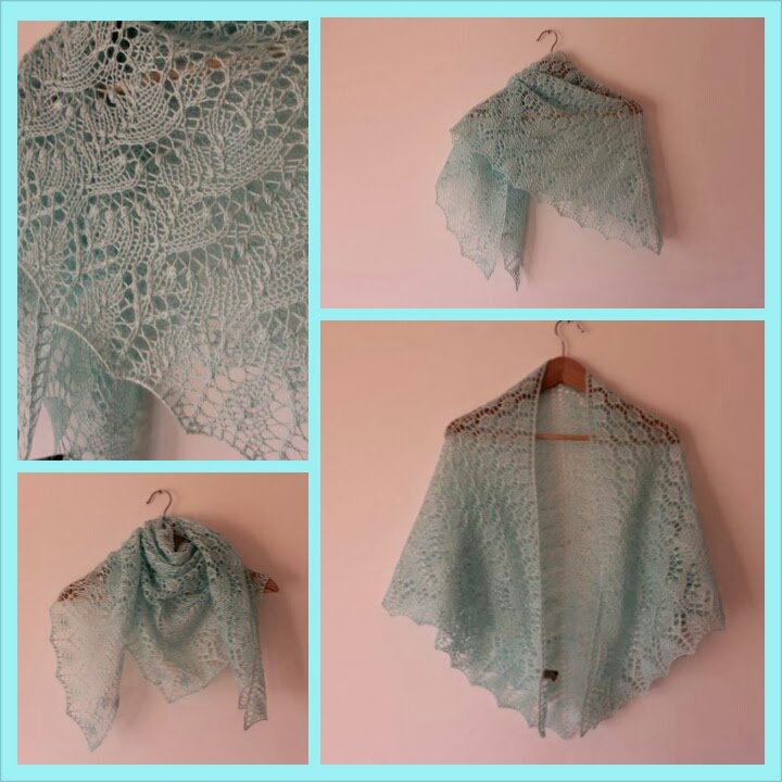 Eu já tinha comentado que adoro fazer xailes....não sei porquê...talvez porque são difíceis e demorados e fico muito orgulhosa com cada um que termino...adoro este em verde menta...uma das cores sensação deste verão.